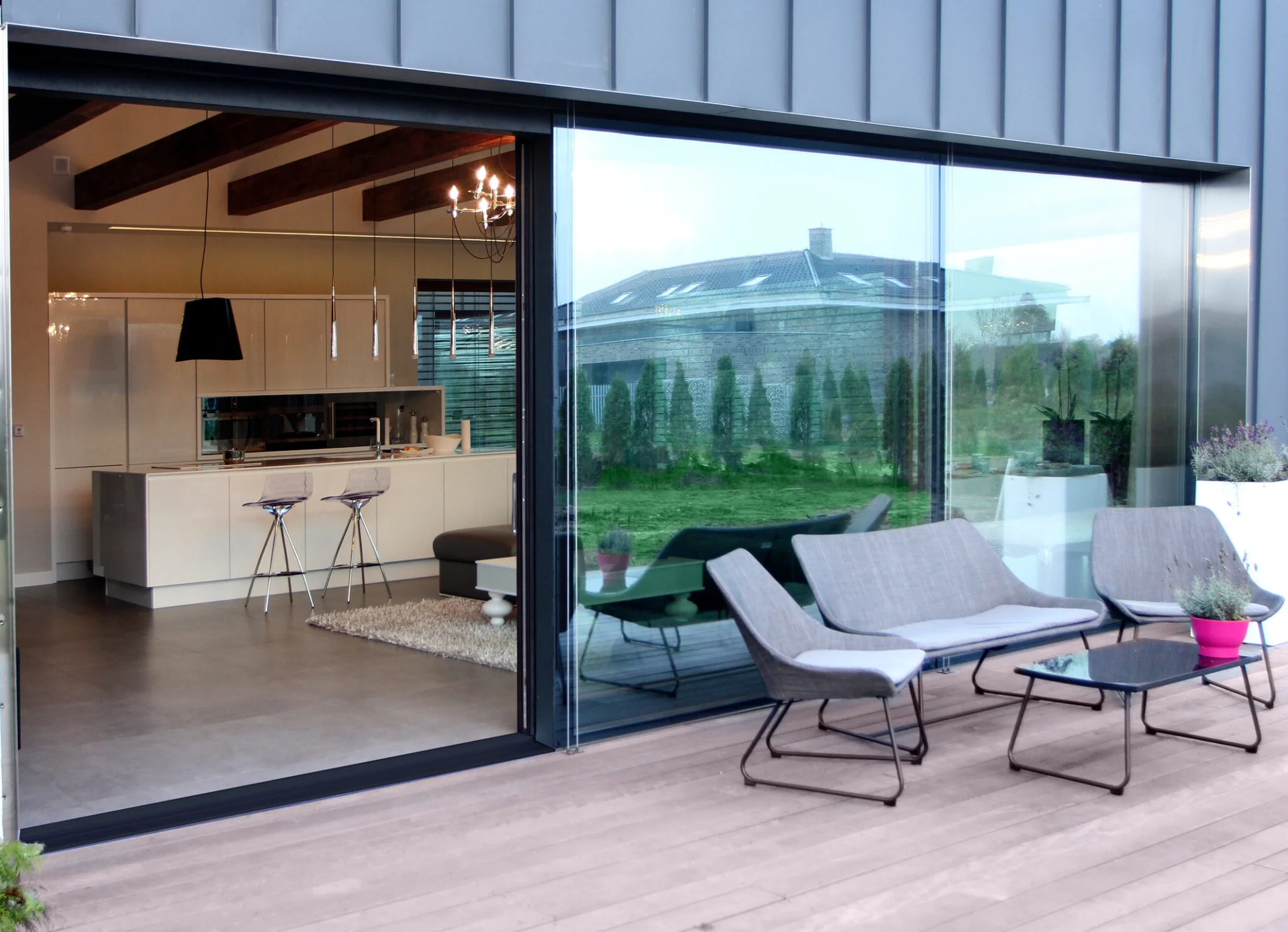 Das System Aluron Glass Line sind moderne Aluminiumfenster und -türen mit minimalistischem Design und hervorragenden Parametern. Die einheitliche Glasoberfläche der Flügel wirkt sehr elegant und passt perfekt zu modernen Häusern. Ein großer Vorteil ist die Möglichkeit, die Glasfarbe individuell anzupassen sowie das einheitliche Erscheinungsbild von Fenstern und Türen im gesamten Gebäude. Das System überzeugt durch Qualität und Ästhetik.