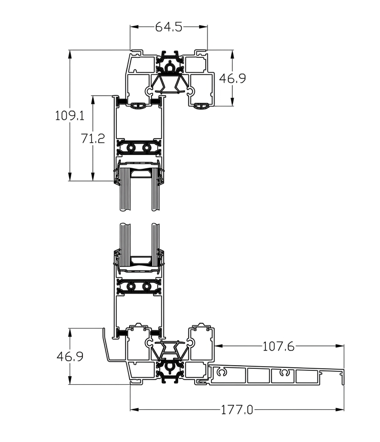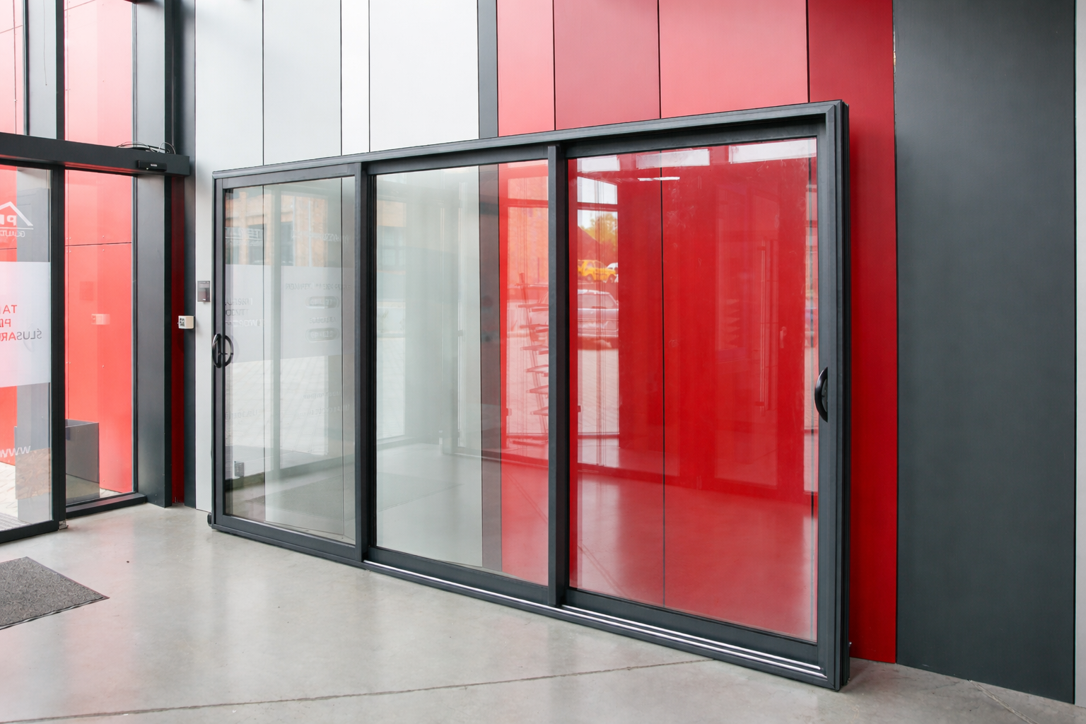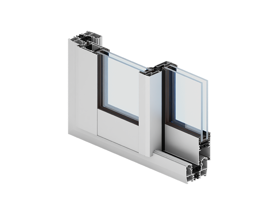 Modern Slide ist ein schlankes und modernes Schiebesystem mit erhöhter Wärmedämmung, mit dem Sie eine Schiebekonstruktion auf 2,3,4-Schienenrahmen entwerfen können. Das Modern Slide-System ist für den Einsatz in öffentlichen Versorgungseinrichtungen sowie in Wohn- und Individualgebäuden vorgesehen. Das System ist mit einer einzigartigen Galendage-Designlösung ausgestattet, dank der es möglich ist, die Tür zu öffnen, indem die Flügel fast vollständig in den Kammern der Gebäudewand versteckt werden. Dank der minimalen Breite der Verbindung von zwei Flügeln (35 mm) und Profilen, die in drei an unterschiedliche Festigkeitsanforderungen angepassten Ausführungen erhältlich sind, zeichnet sich das Modern Slide-System durch Leichtigkeit und Modernität aus.
