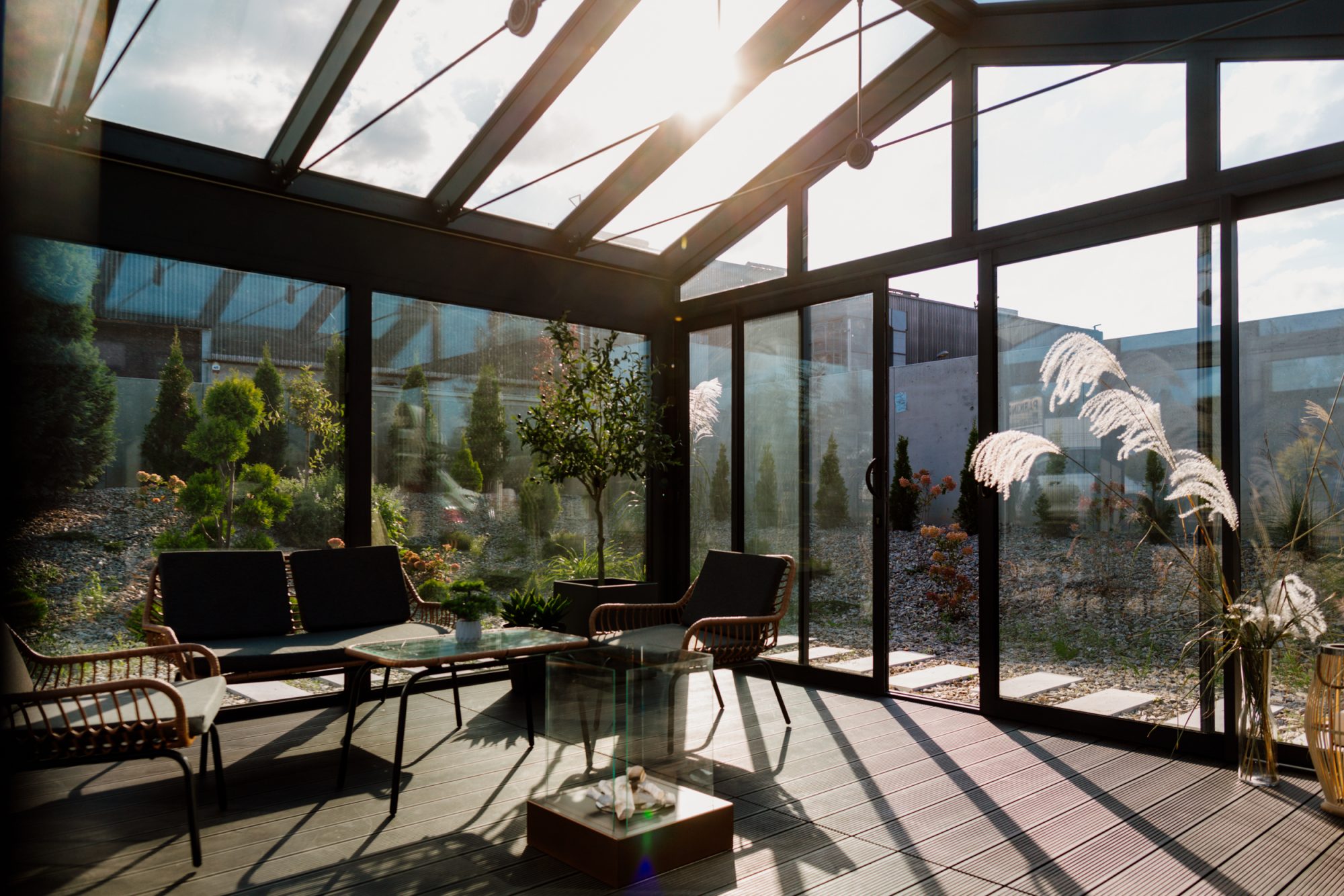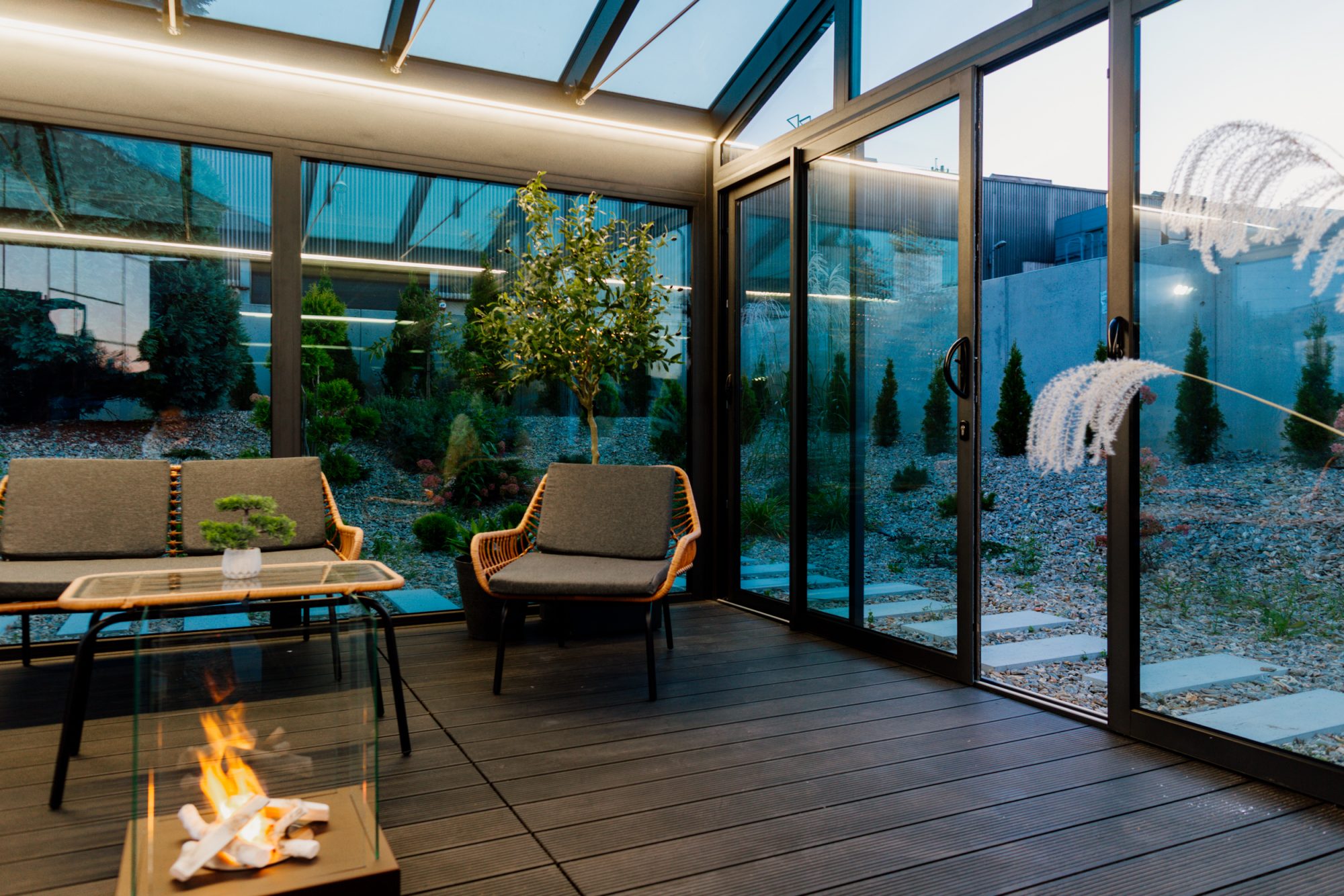 Ein warmes System für Veranden, Terrassen, Gärten und Innenhöfe