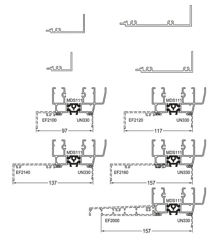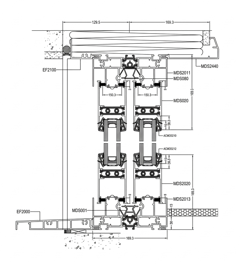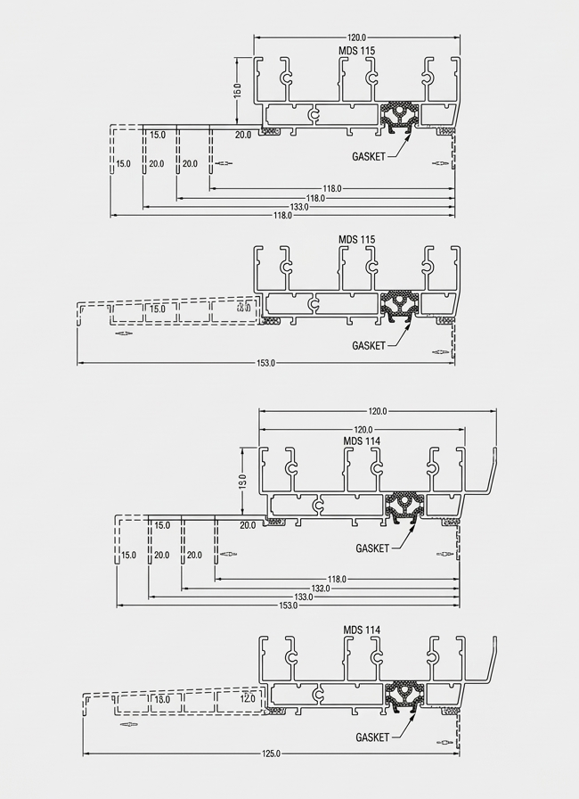 Modern Slide bietet 4 mögliche Öffnungsmuster. Wenn Sie sich für dieses System entscheiden, können Sie wählen: Schema D (zwei Gangblätter), Schema D + G (drei Gangblätter), Schema F (vier Gangblätter) und System mit 6 Gangblättern. Die maximale Verglasungsmöglichkeit beträgt: 4000×2500 mm für zweiflügelige Konstruktionen, 4000×2700 mm für dreiflügelige Konstruktionen und 4000×2400 mm für vierflügelige Konstruktionen.