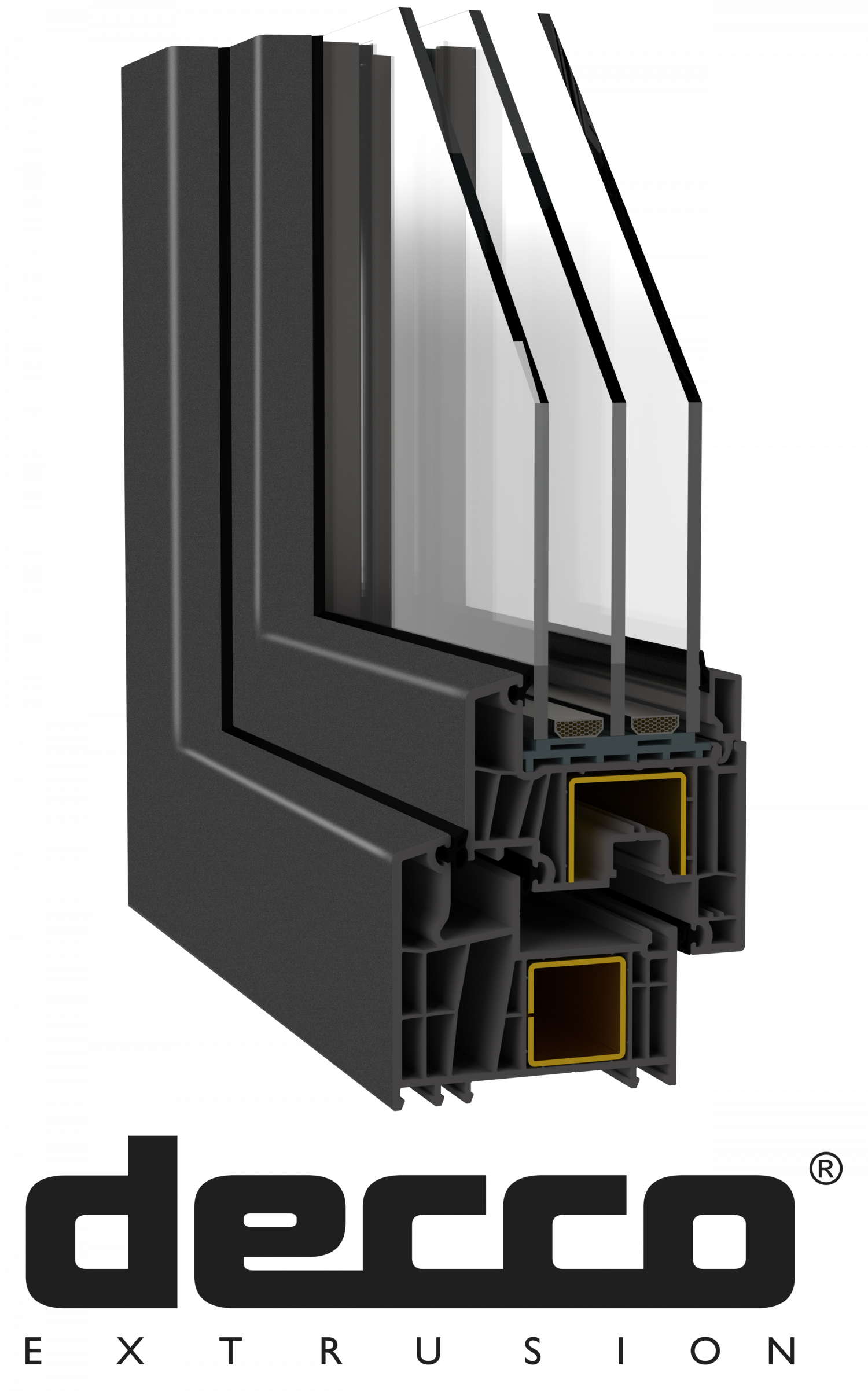 Einer der größten Vorteile des DECCO 83-Systems ist seine herausragende Wärmedämmung. Dank der fortschrittlichen 7-Kammer-Technologie und der zusätzlichen dritten Dichtung erreicht das Profil einen beeindruckenden Wärmedurchgangskoeffizienten Uw von 0,59 W/m²K (bei einem Referenzfenster mit einer 4/12/4/12/4/12/4 Verglasung).