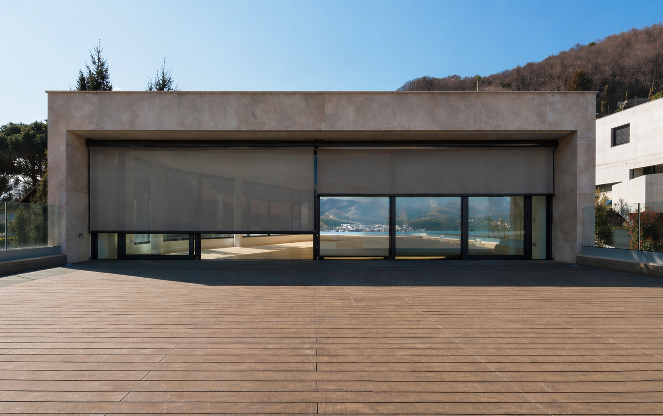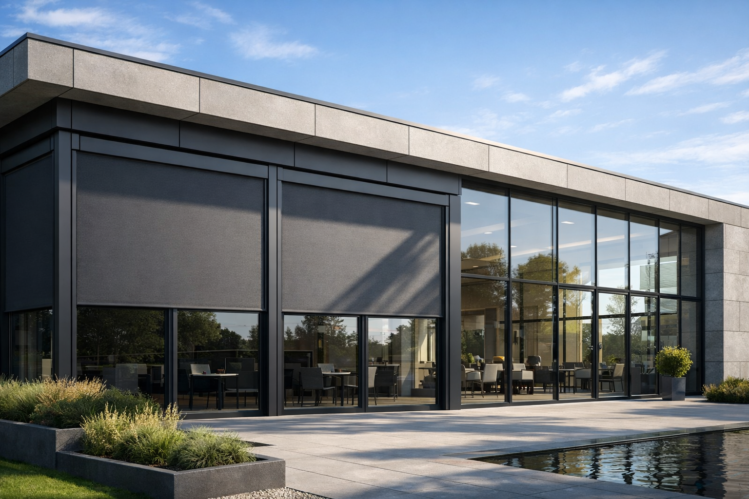 Wo eignet sich das System am besten? ZIP-Screen ECO ist die ideale Lösung für große Glasflächen in Einfamilienhäusern, Terrassen und Wintergärten, bioklimatische Pergolen, Restaurants und Horeca-Bereiche sowie Büros und gewerbliche Objekte.